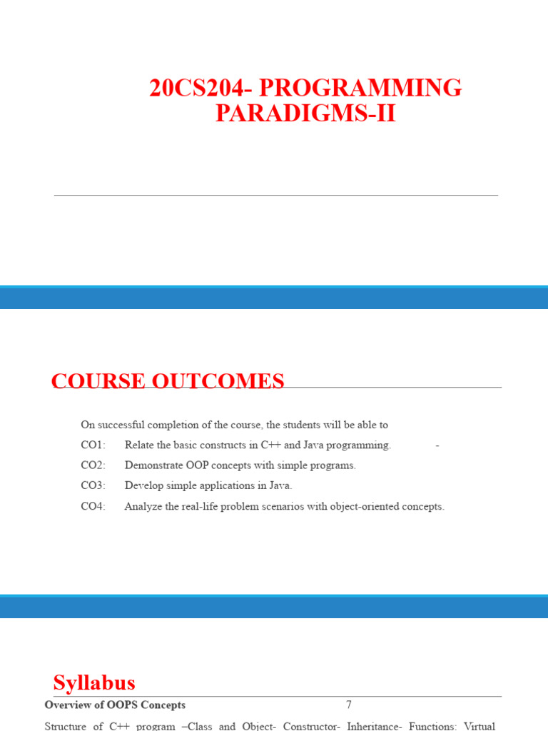 CO1: Relate the basic constructs in C++ and Java programming. -