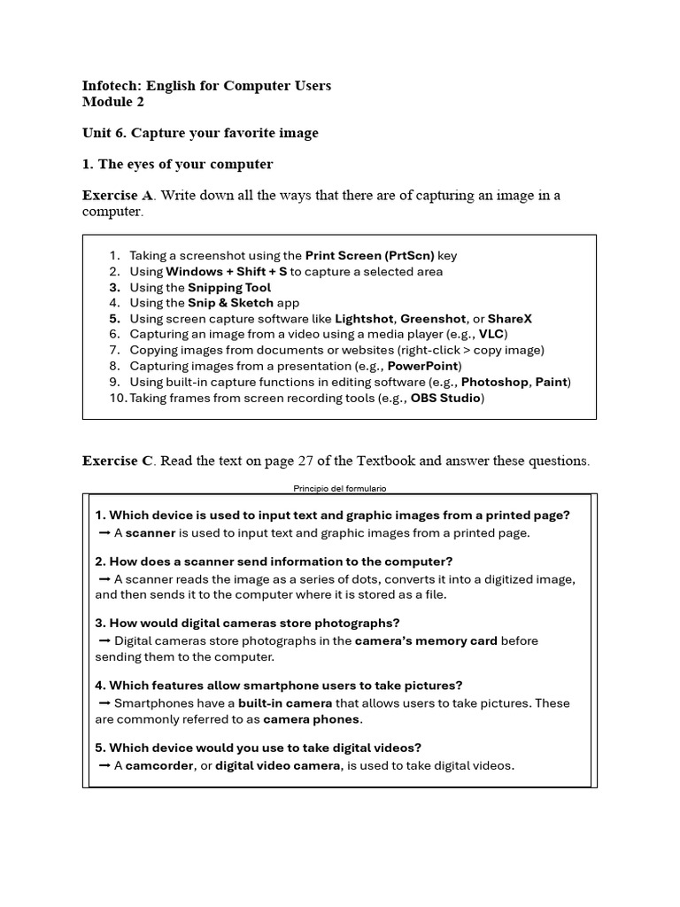 Exercise A. Write down all the ways that there are of capturing an image in a