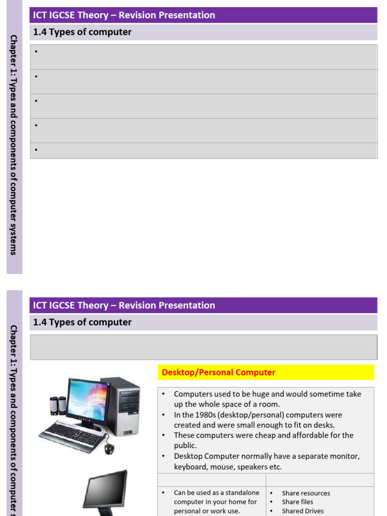 • Describe the characteristics of a personal/desktop computer and its uses, both as a