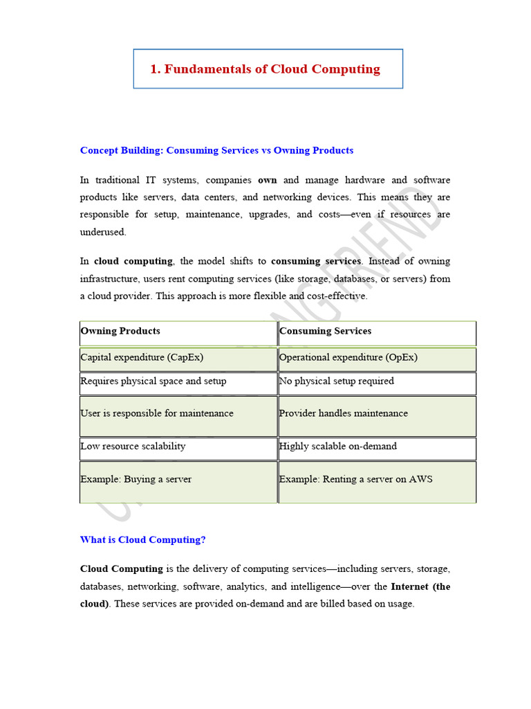 What it includes: Major cloud service models: SaaS, PaaS, and IaaS