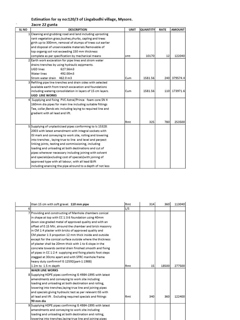 Estimation for sy no:120/3 of Lingabudhi village, Mysore.
