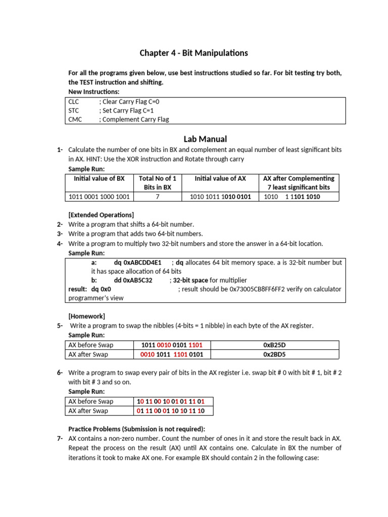For all the programs given below, use best instructions studied so far. For bit testing try both,