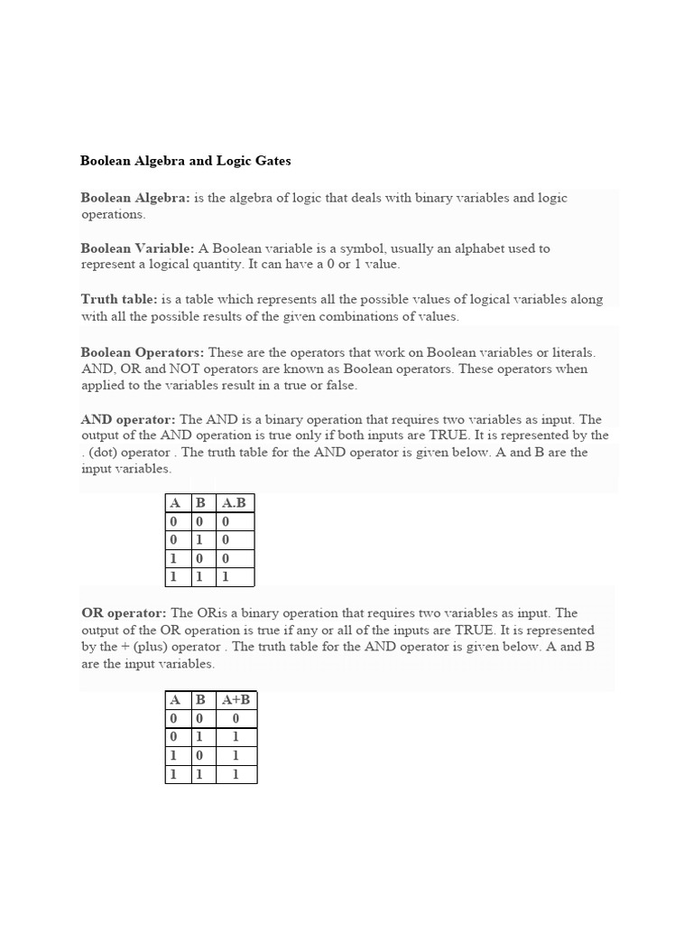 Boolean Algebra: is the algebra of logic that deals with binary variables and logic