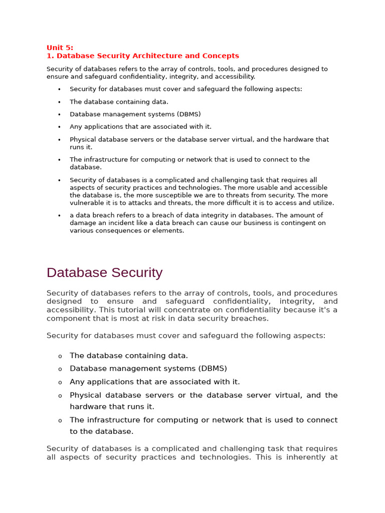 1. Database Security Architecture and Concepts