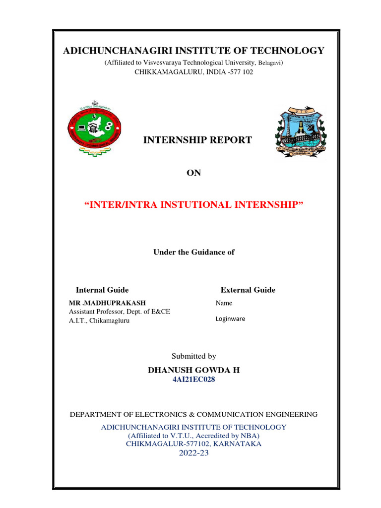 satisfactorily completed the Internship work prescribed by Visvesvaraya Technological University,