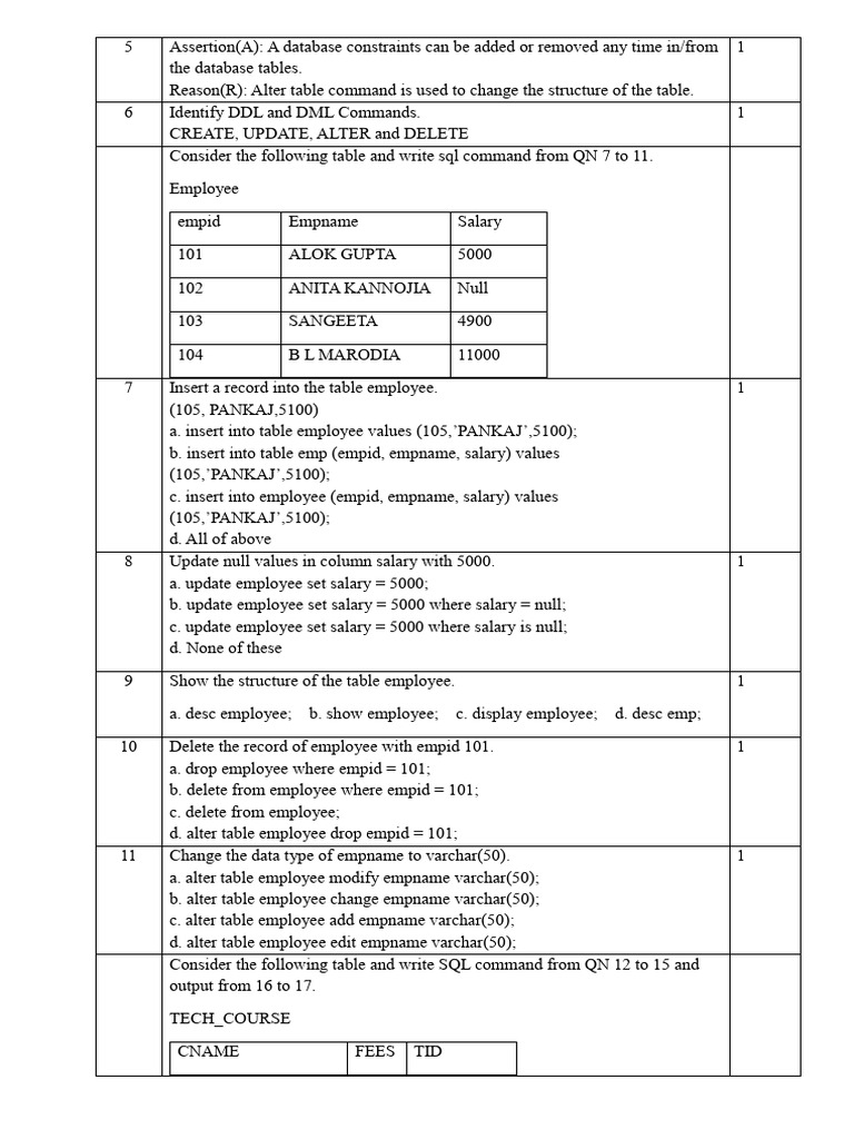 5 Assertion(A): A database constraints can be added or removed any time in/from 1