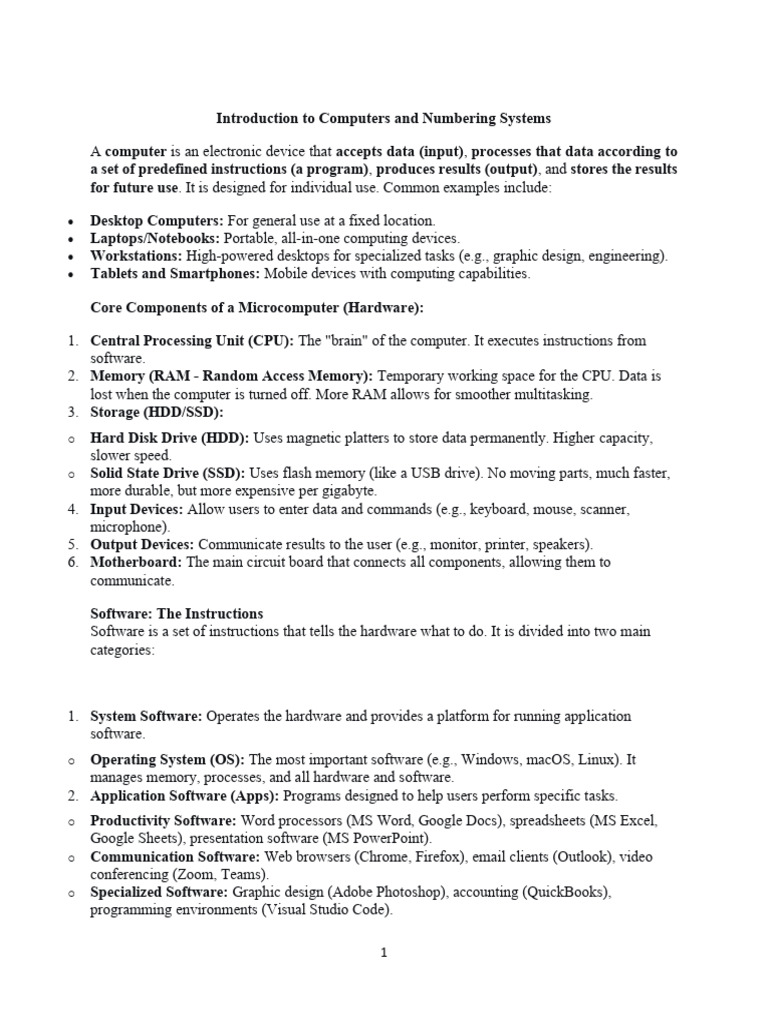 o Operating System (OS): The most important software (e.g., Windows, macOS, Linux). It