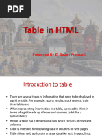 HTML tables allow the web designer to align page content in a tabular fashion while spanning eleme horizontally across the web page, rather than stacking them up one on top of another.