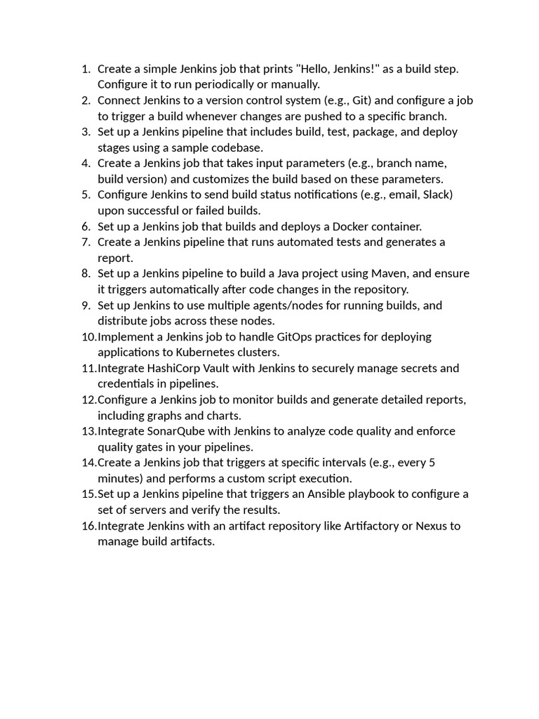 1. Create a simple Jenkins job that prints "Hello, Jenkins!" as a build step.