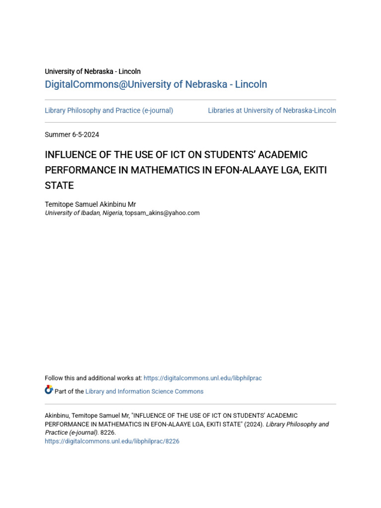 Akinbinu, Temitope Samuel Mr, "INFLUENCE OF THE USE OF ICT ON STUDENTS’ ACADEMIC
