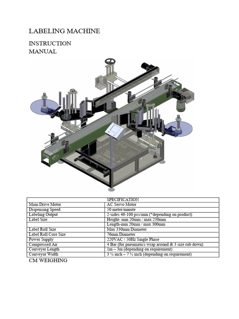 Before installing and operating the Automatic Labeling Machine BW 200C read the following