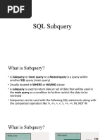 A subquery (also called nested query or inner query) is a query written inside another query. The
