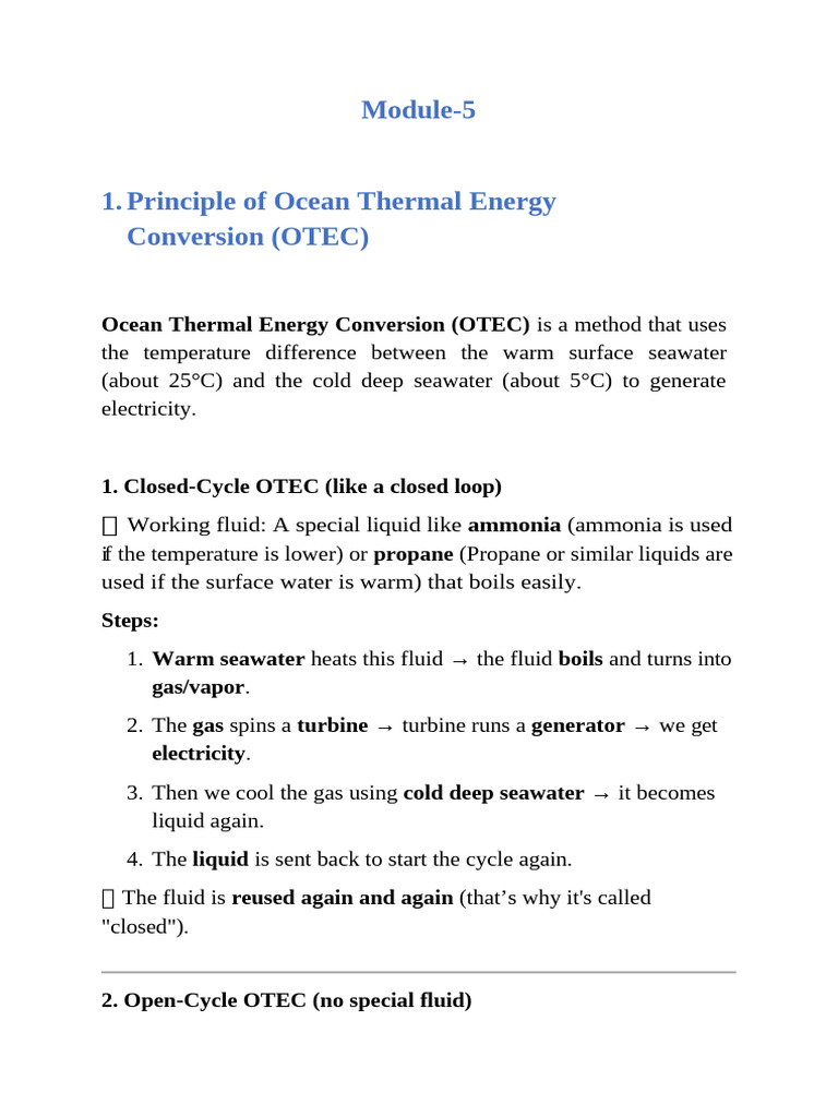 Ocean Thermal Energy Conversion (OTEC) is a method that uses