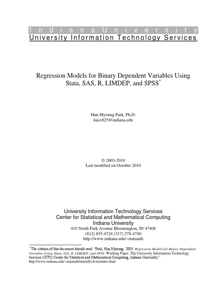 2003-2010, The Trustees of Indiana University Regression Models for Binary Dependent Variables: 10