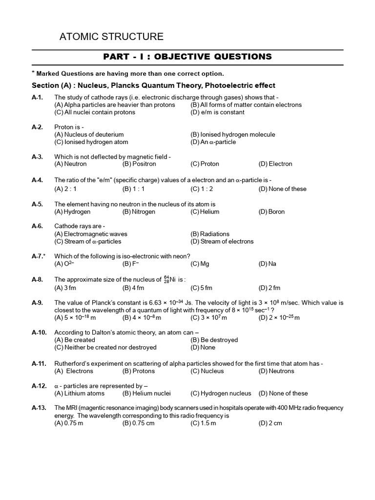 Section (A) : Nucleus, Plancks Quantum Theory, Photoelectric effect