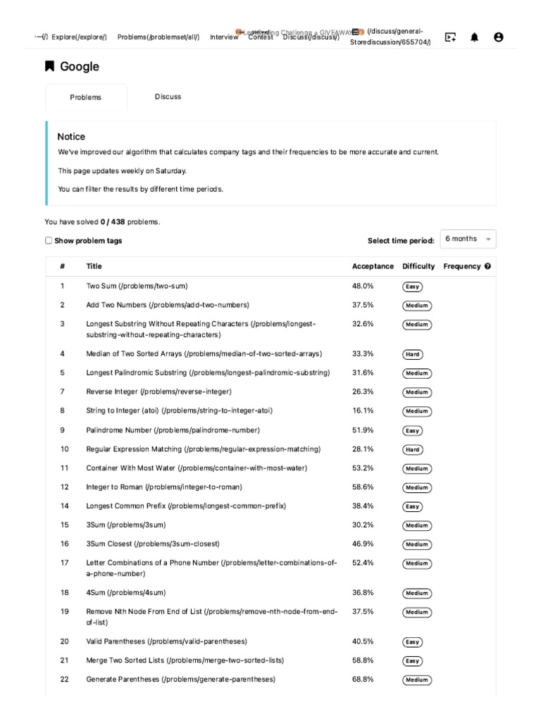 1 Two Sum (/problems/two-sum) 48.0% Easy