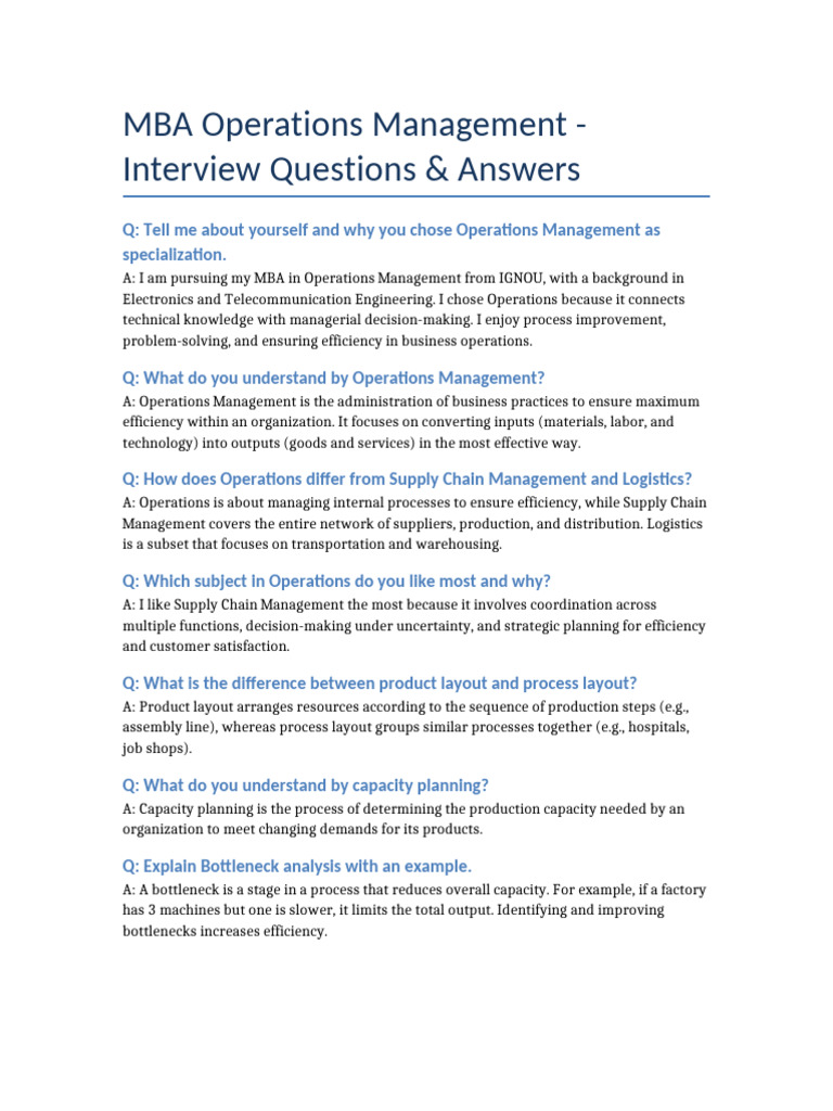 A: I am pursuing my MBA in Operations Management from IGNOU, with a background in