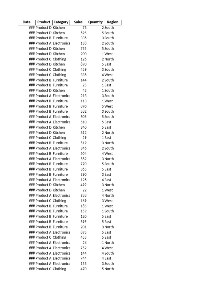 Date Product Category Sales Quantity Region