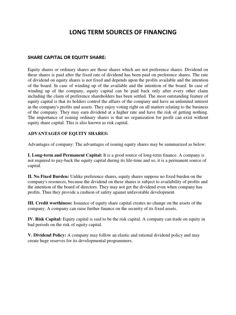 LONG TERM SOURCES OF FINANCING