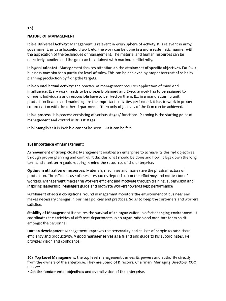 1C) Top Level Management: the top level management derives its powers and authority directly