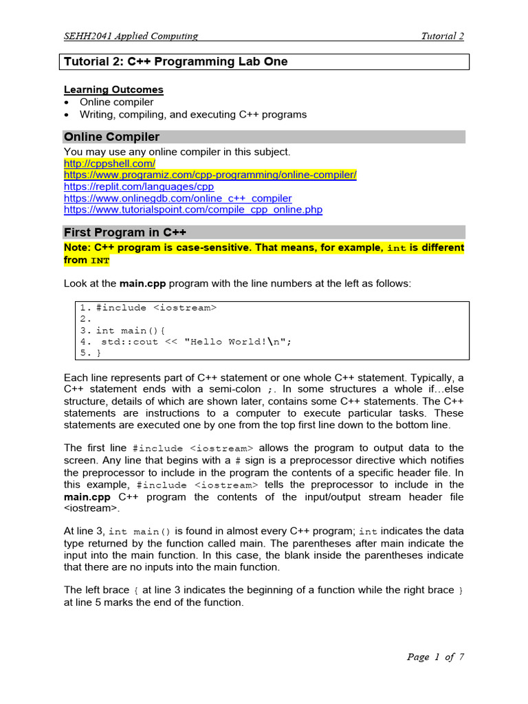 At line 3, int main() is found in almost every C++ program; int indicates the data