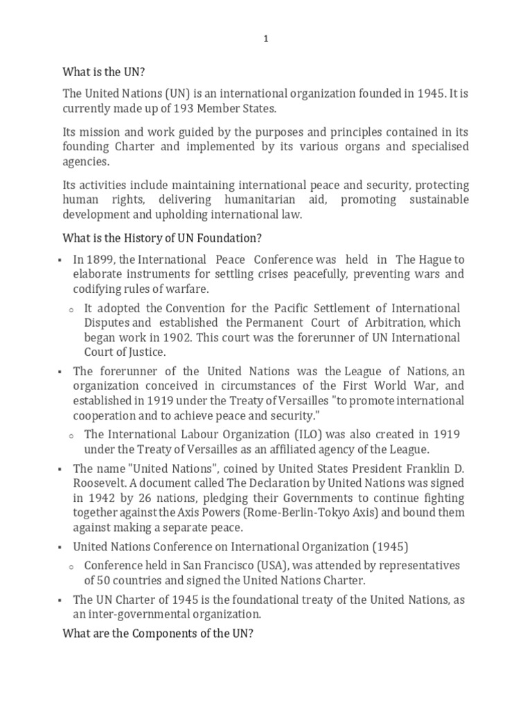 ▪ The UN Charter of 1945 is the foundational treaty of the United Nations, as