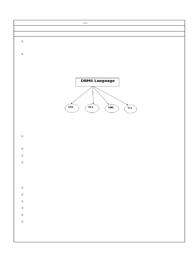 o DDL stands for Data Definition Language. It is used to define database structure or