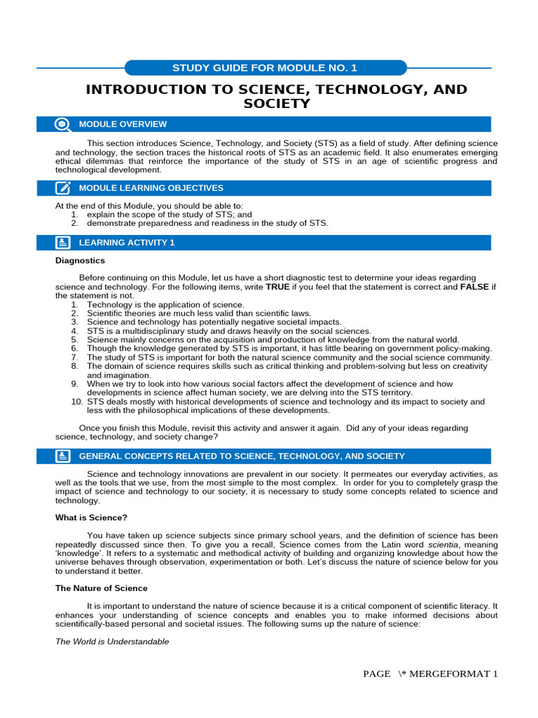 1. explain the scope of the study of STS; and
