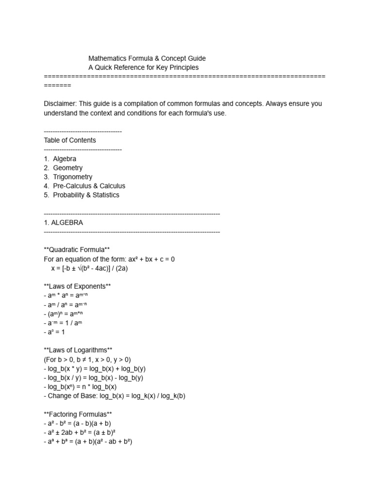 Disclaimer: This guide is a compilation of common formulas and concepts. Always ensure you