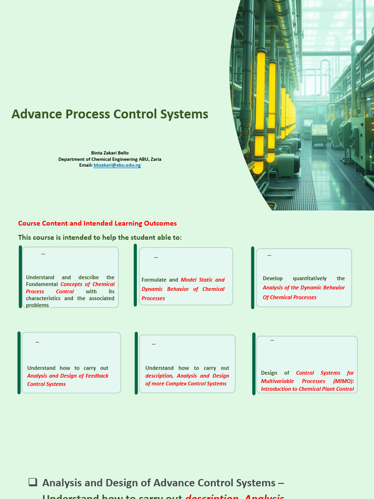 CHEN502 - 2025 - Advance Process Control - Lecture Slides
