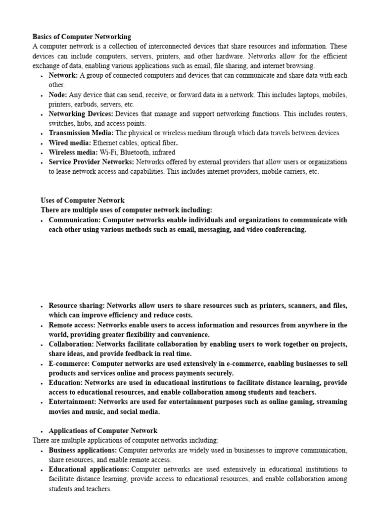 A computer network is a collection of interconnected devices that share resources and information. These