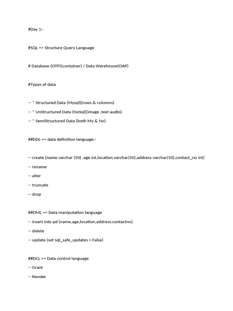 ##DDL => data definition language:-