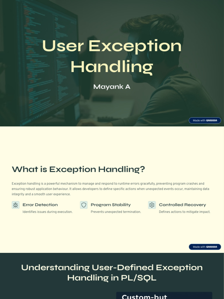 -- Your code logic exp1 EXCEPTION; -- For division by zero exp2