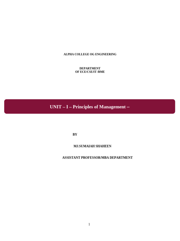 1. Unity of action: – an enterprise has diverse resources; technique, activities etc, and they all