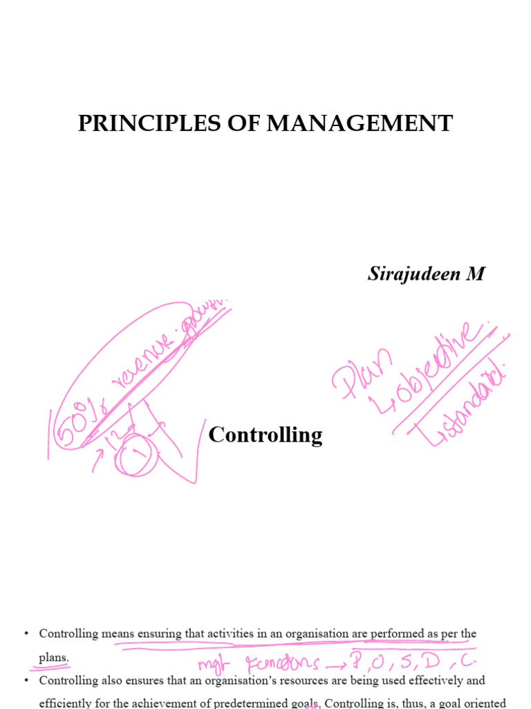 • Controlling means ensuring that activities in an organisation are performed as per the