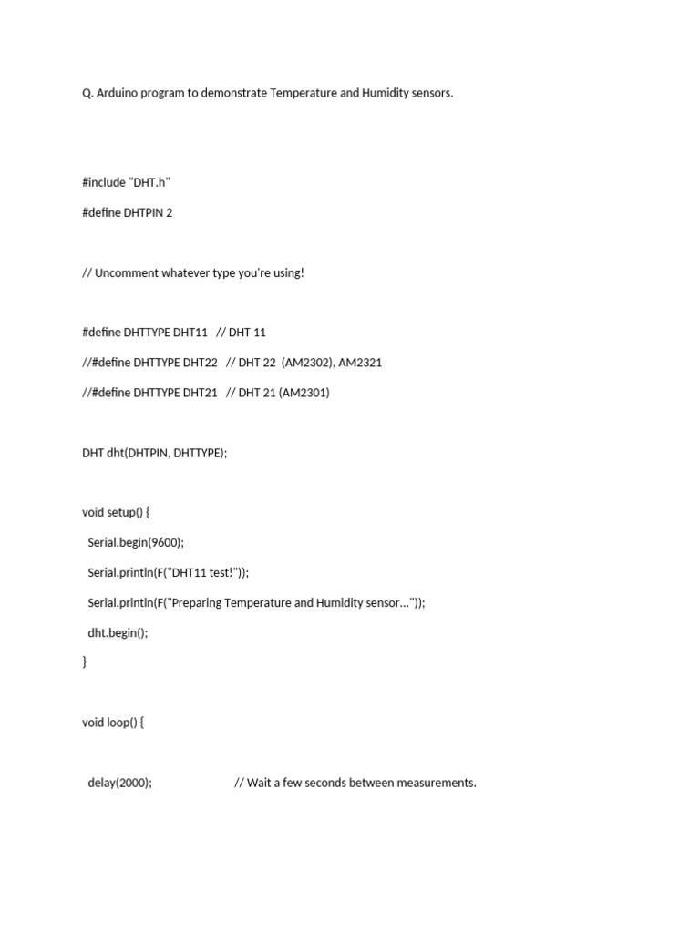 Q. Arduino program to demonstrate Temperature and Humidity sensors.