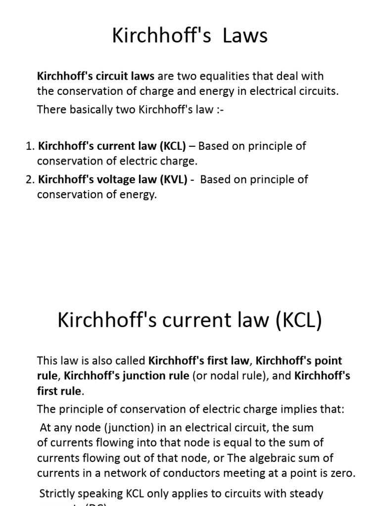 1. Kirchhoff's current law (KCL) – Based on principle of
