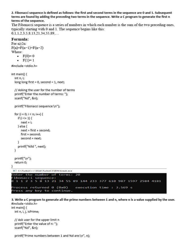 terms are found by adding the preceding two terms in the sequence. Write a C program to generate the first n