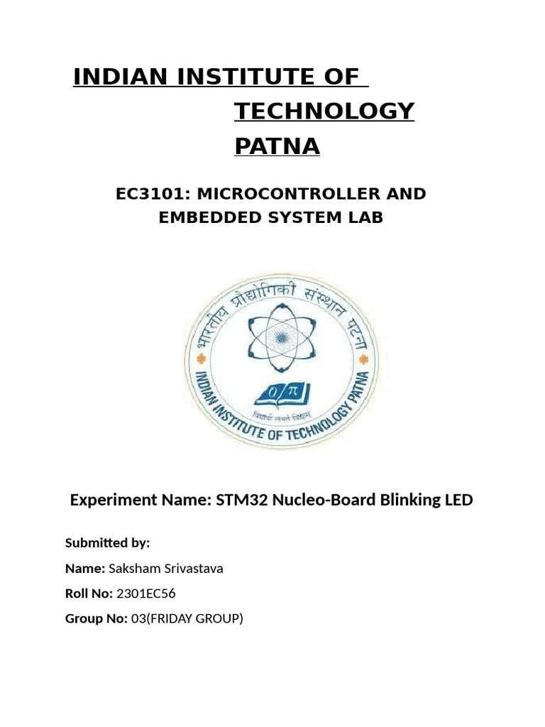 AIM: To write and implement an embedded C program to blink the user LED on the STM32F103RB