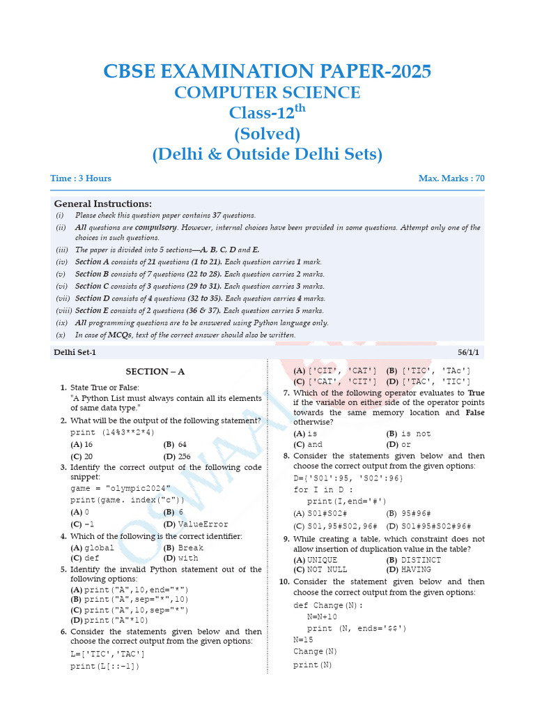 (iii) The paper is divided into 5 sections—A, B, C, D and E.