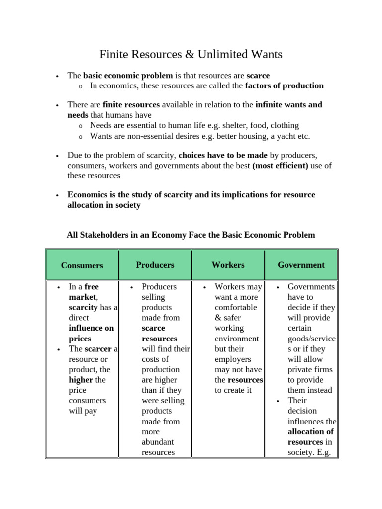 Finite Resources & Unlimited Wants