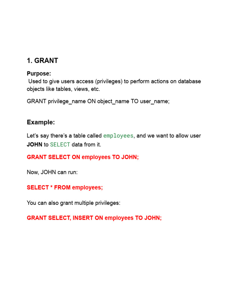 GRANT SELECT ON employees TO JOHN;