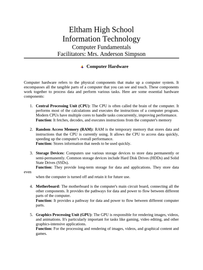 in a computer system. Understanding computer storage is crucial for students, as such here