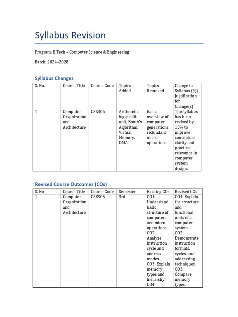S. No Course Title Course Code Semester Existing COs Revised COs