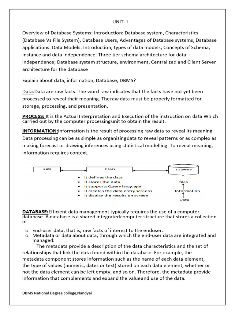 applications. Data Models: Introduction; types of data models, Concepts of Schema,