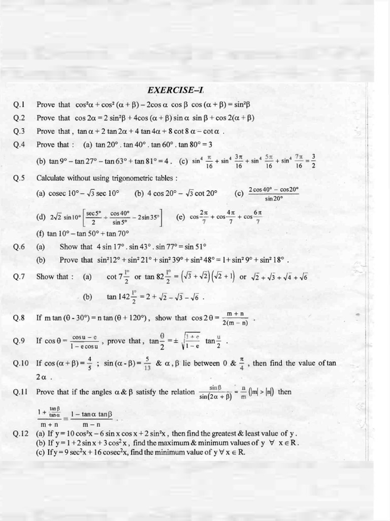 Q.12 (a) If y = 10 cos2x - 6 sin x cos x + 2 sin2x, then find the greatest & least value of y.