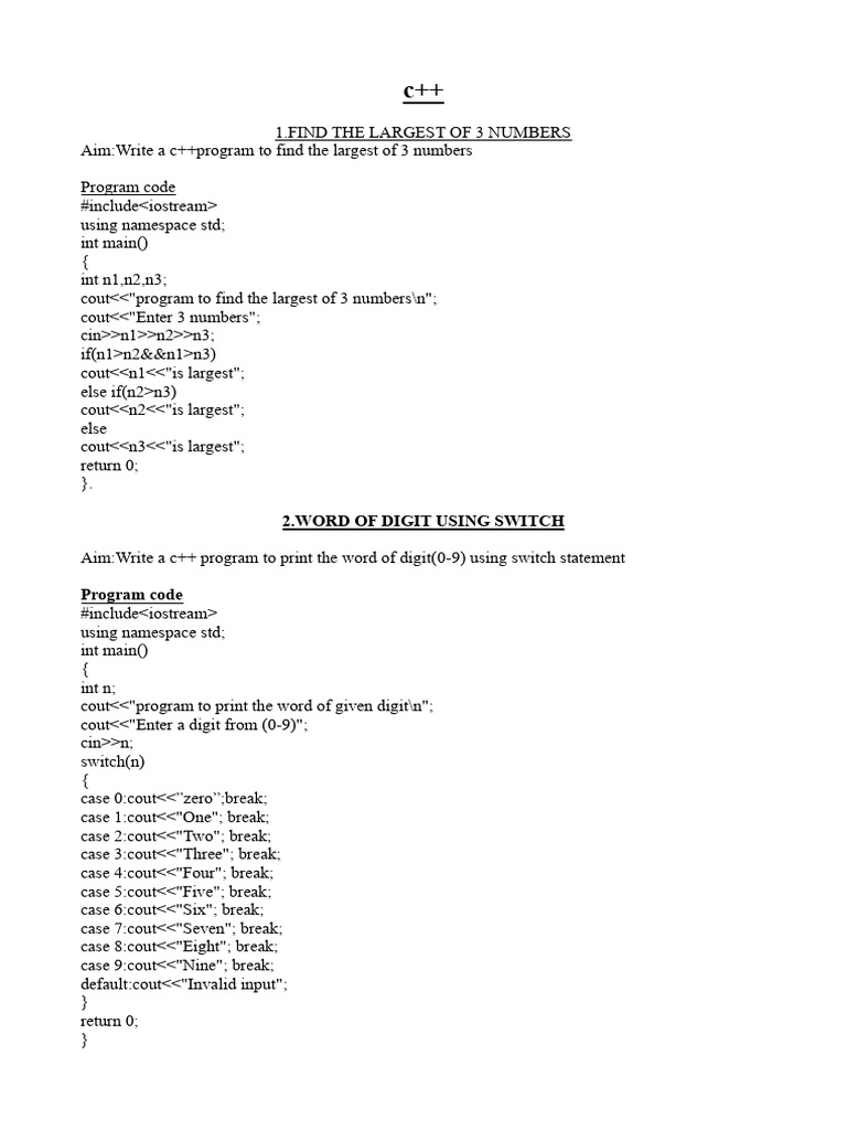 Aim:Write a c++ program to print the word of digit(0-9) using switch statement