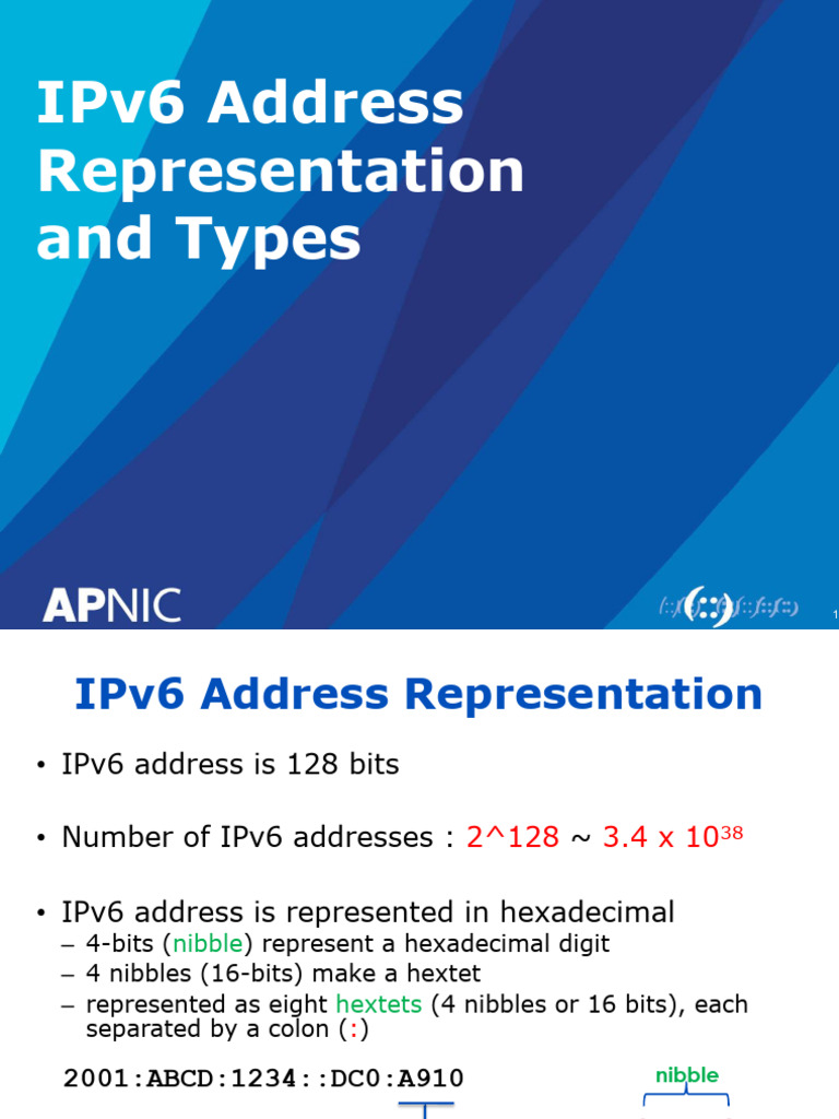 • Number of IPv6 addresses : 2^128 ~ 3.4 x 1038