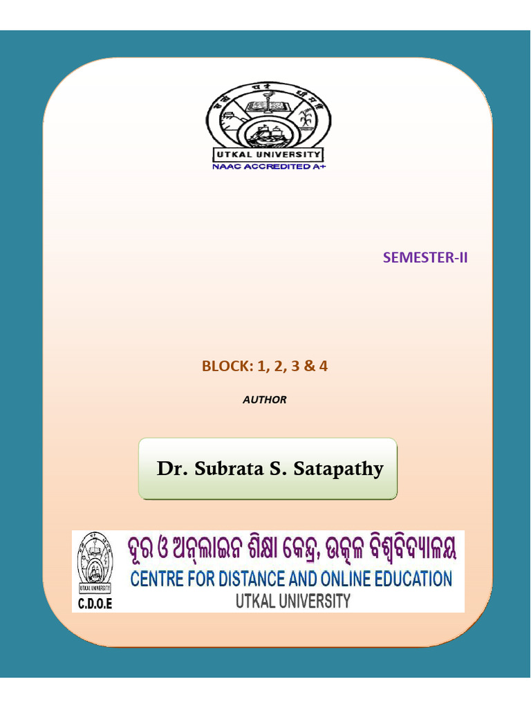CENTRE FOR DISTANCE AND ONLINE EDUCATION, UTKAL UNIVERSITY,