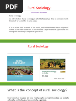 policies. Many rural sociologists work in the areas of development studies, community studies,